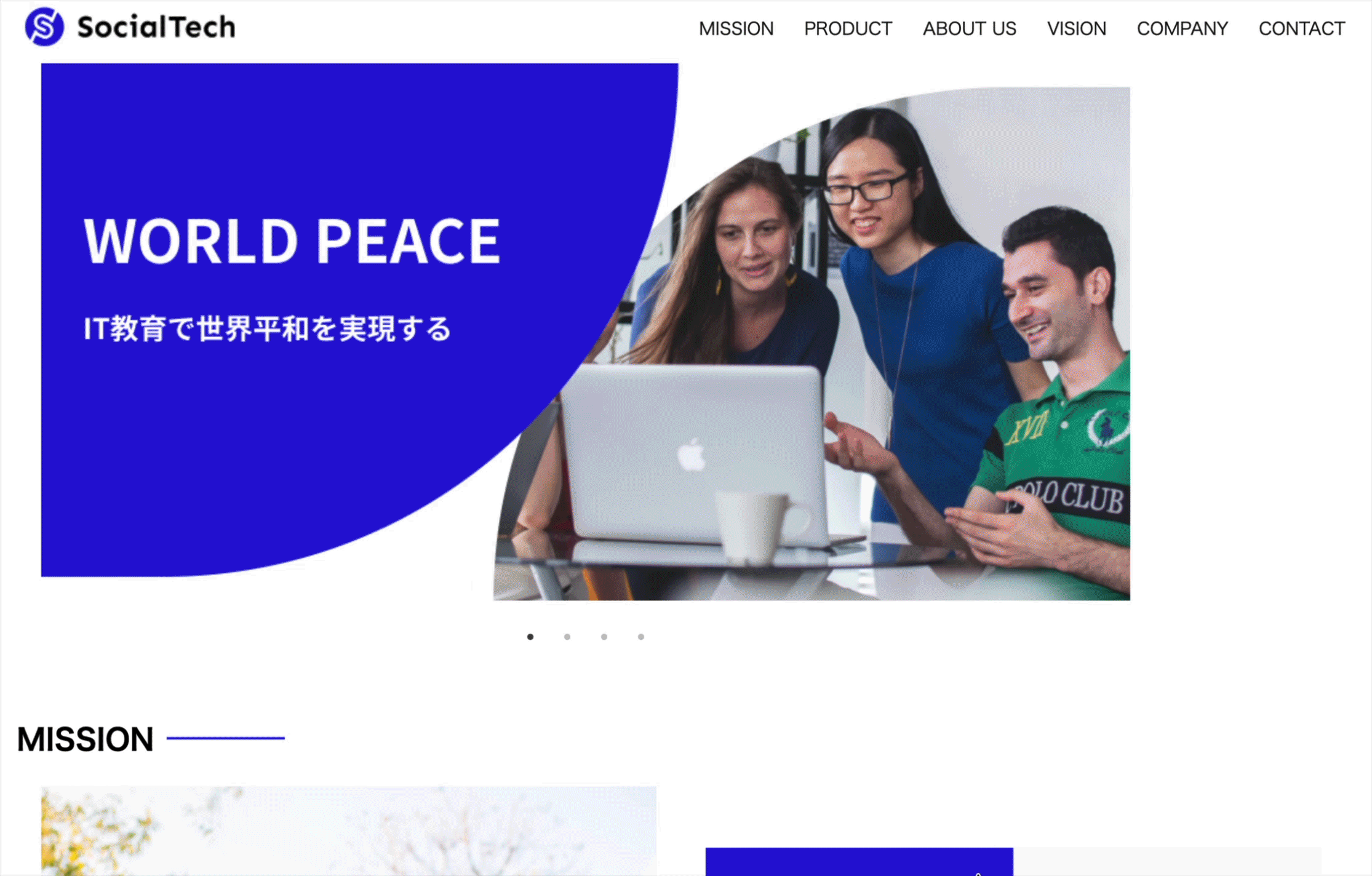 企業様のブランドカラーを基調としたサイトをデザインしました。使用カラーも4色(青・白・黒・グレー)のみとし、サイト全体の統一感を出しています。